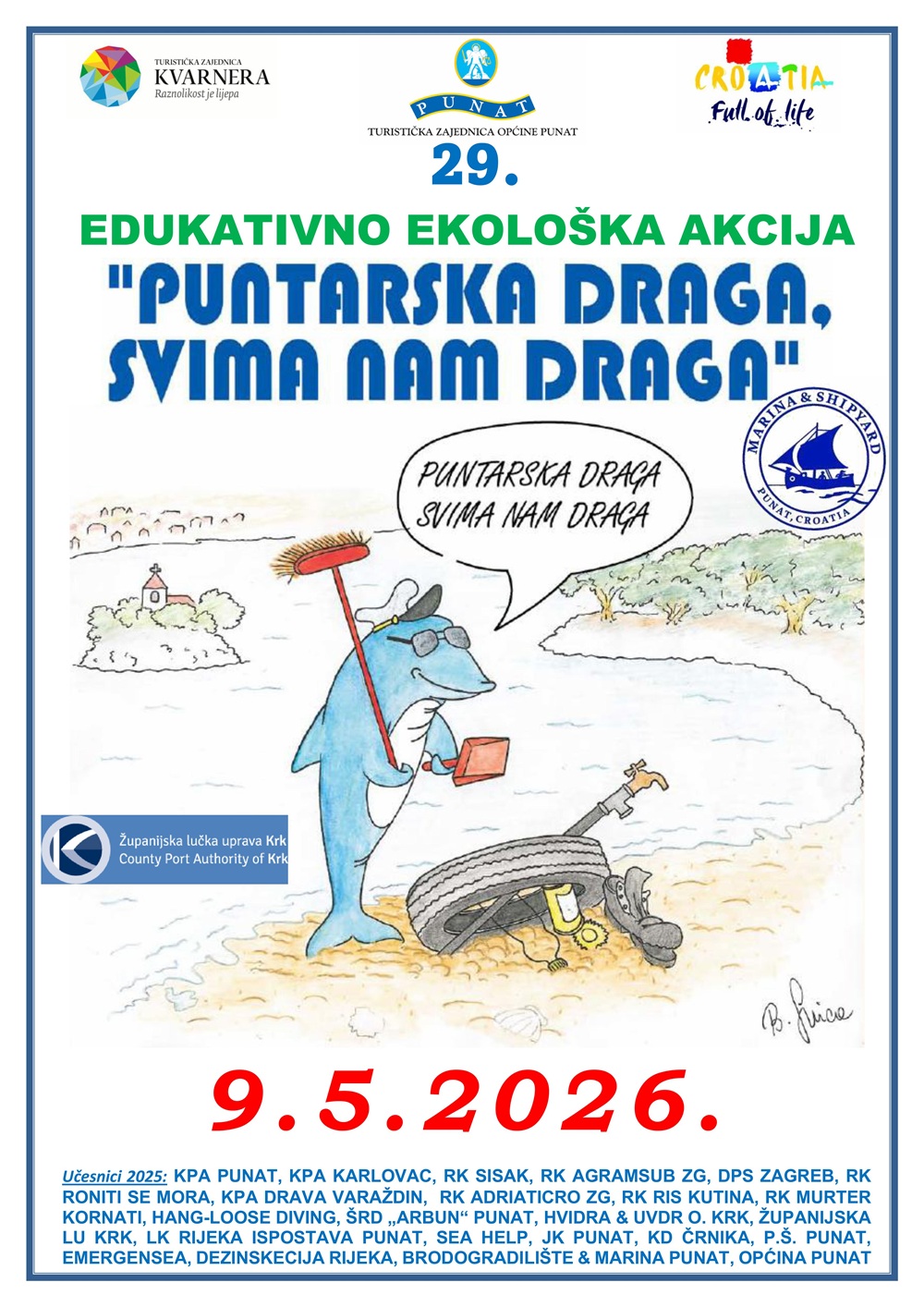 Akcija pod nazivom „Puntarska draga, svima nam draga“ održat će se 09.05.2025. godine. Veselimo se nastavku dugogodišnje suradnje s ciljem zaštite našeg prirodnog okoliša, podizanjem razine sigurnosti podvodnih aktivnosti te podizanja ekološke svijesti i edukacije naročito naših mladih.
