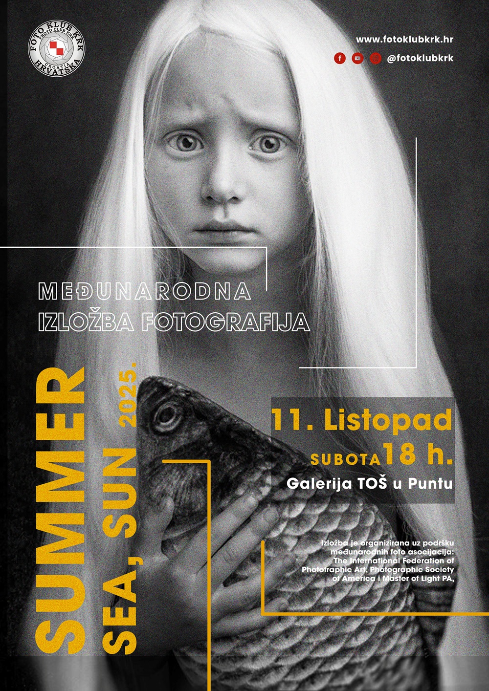 U galeriji TOŠ u Puntu 11.listopada 2025. g.u 18 h svečano se otvara međunarodna izložba fotografija "SUMMER, SEA,SUN" u organizaciji Foto kluba Krk.
